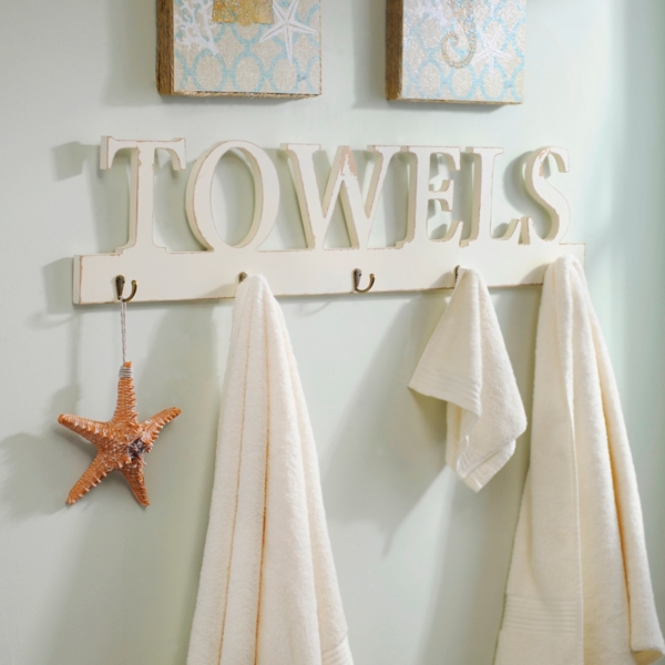 White Towel Hook Rack Bathroom Decoration Plan