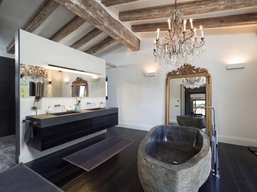 Black And Wood Bathroom